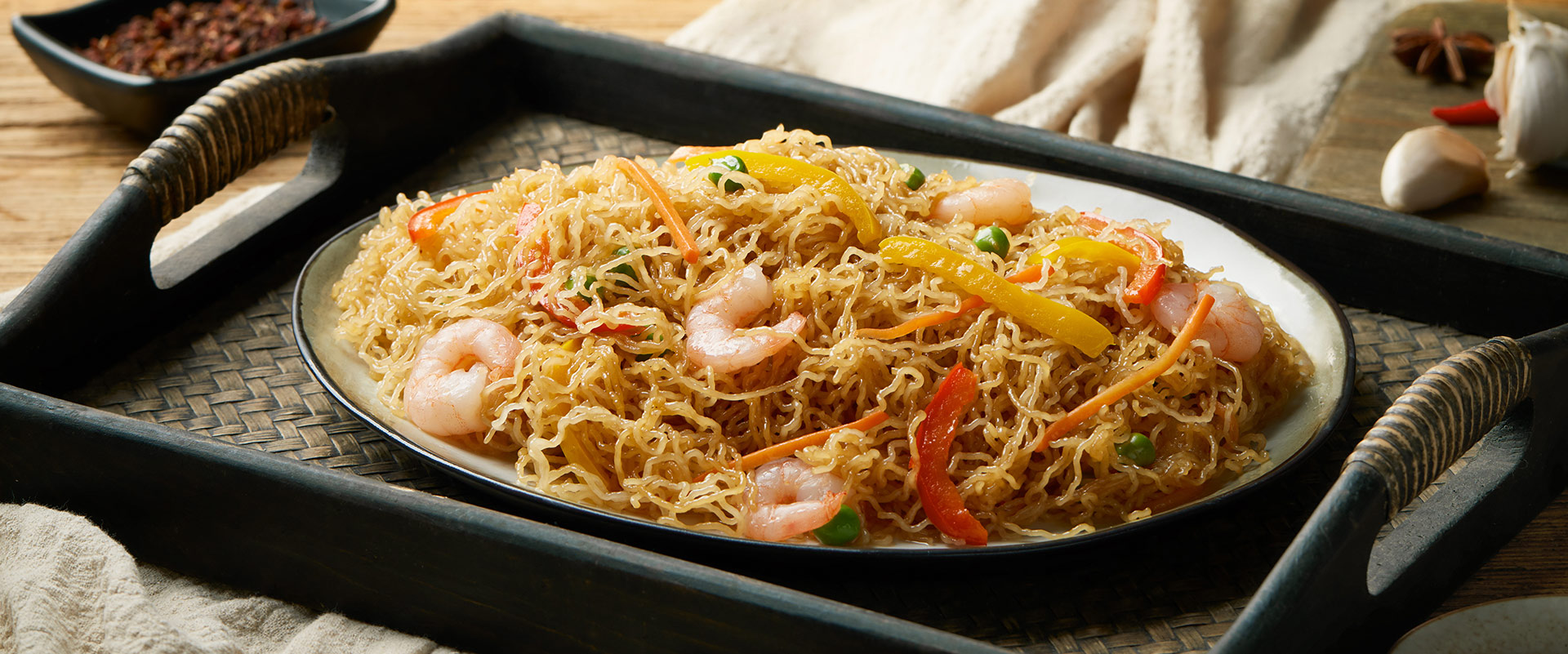 冷水浸泡米粉5-10分鐘后撈出,瀝干放置20-40分鐘使其自然軟化,炒之前將米粉放入冷水抓散后瀝干,即可下鍋,加入配菜,炒熟后即可食用。(炒米粉泡發(fā)小口訣:一泡二放三搓開)